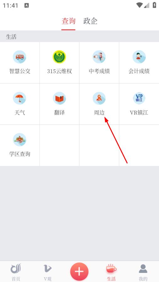 2、在生活服务页面,点击周边,进入周边服务页面。