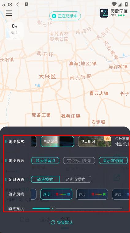 4、可对地图模式、地图设置、足迹设置等进行调整。