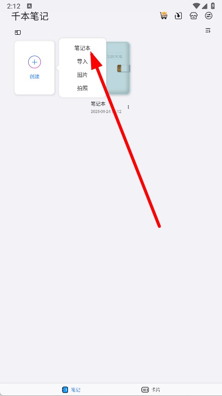 1、打开千本笔记APP,点击创建。