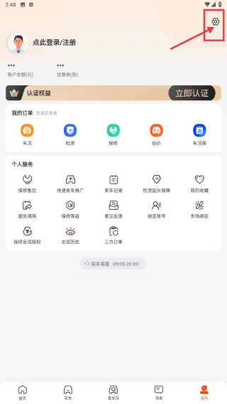 1、打开汽车服务应用,点击底部我的选项,进入个人中心页面。