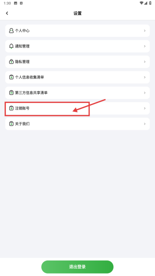 3、在设置页面,选择注销账号选项,进入账号注销说明页。