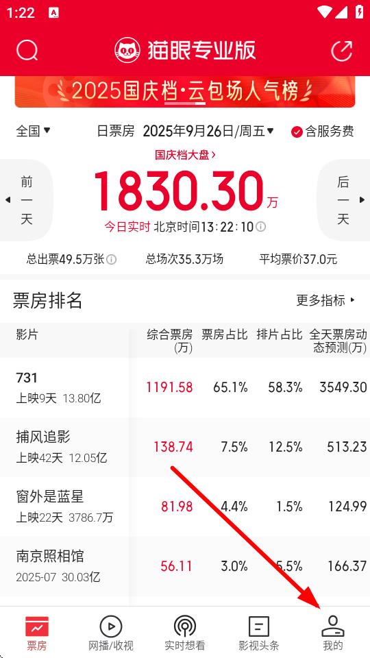 1、在猫眼app的首页,需要点击底部我的按钮,进入个人页面。