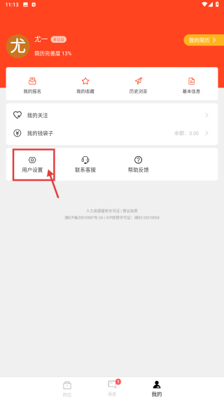 2、在个人中心,点击用户设置选项,进入设置界面。