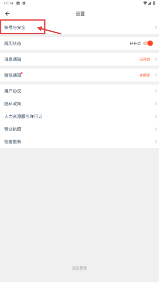 3、在设置页面,点击账号与安全选项,进入账号安全界面。