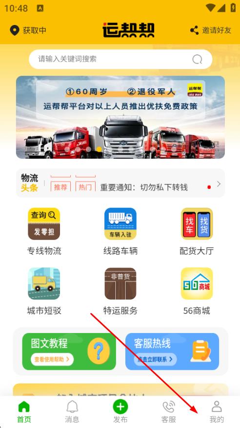 1、打开运帮帮APP,点击底部导航栏中的我的。