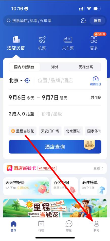 1、打开艺龙旅行APP,点击底部我的选项进入个人页面。