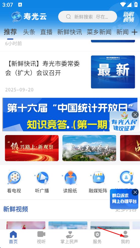 2.媒体板块,包含资讯推荐、早安寿光、直播、即时报、菜芯号五个模块。