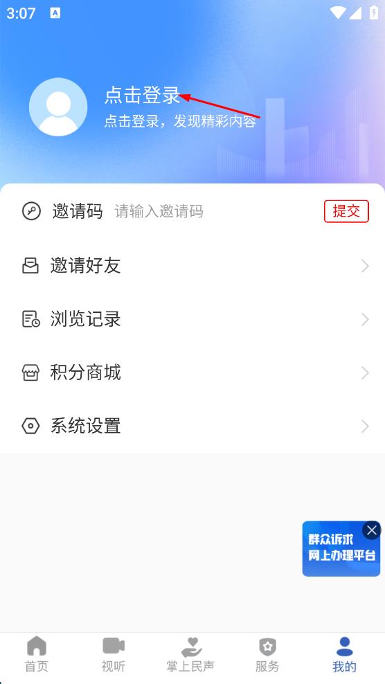 2、进入App主界面后,点击底部导航栏中的“我的”选项。