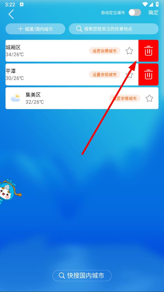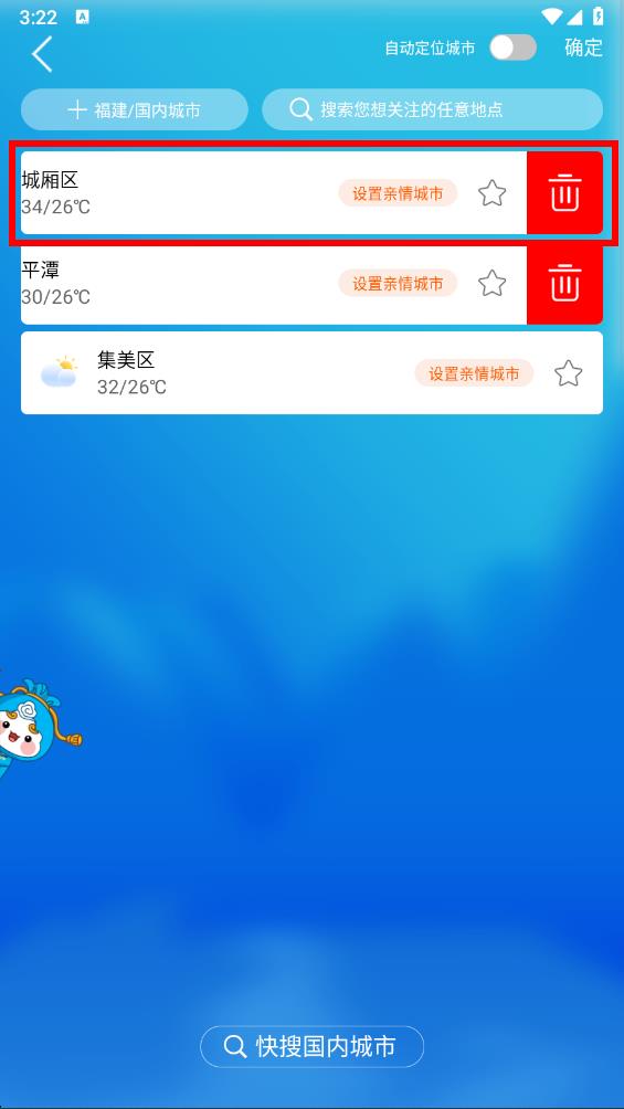 4、点击图标确认删除后,即可完成删除该城市操作。