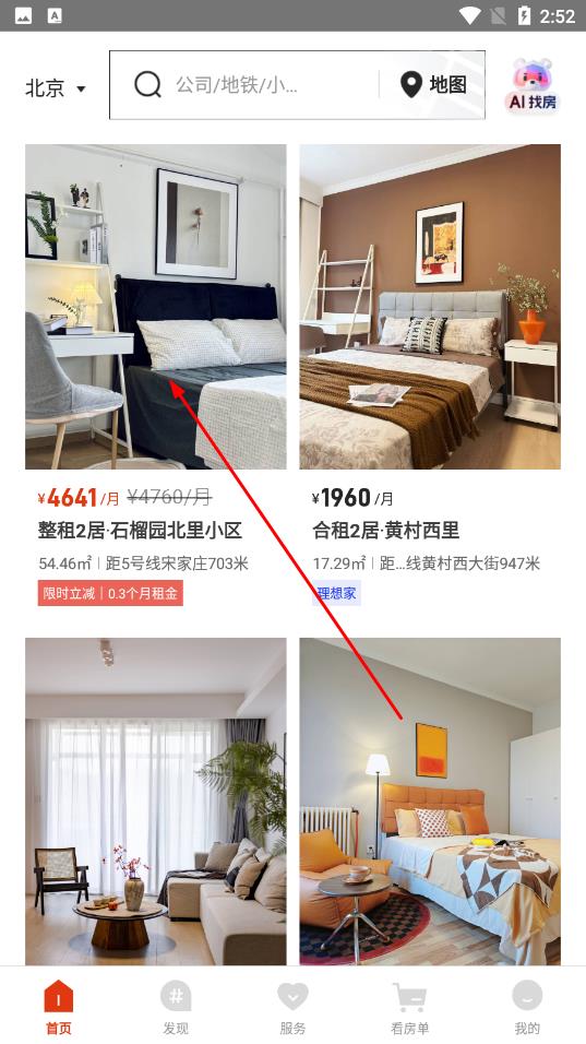 1、打开自如App,在首页浏览房源,找到感兴趣的房源后点击进入。