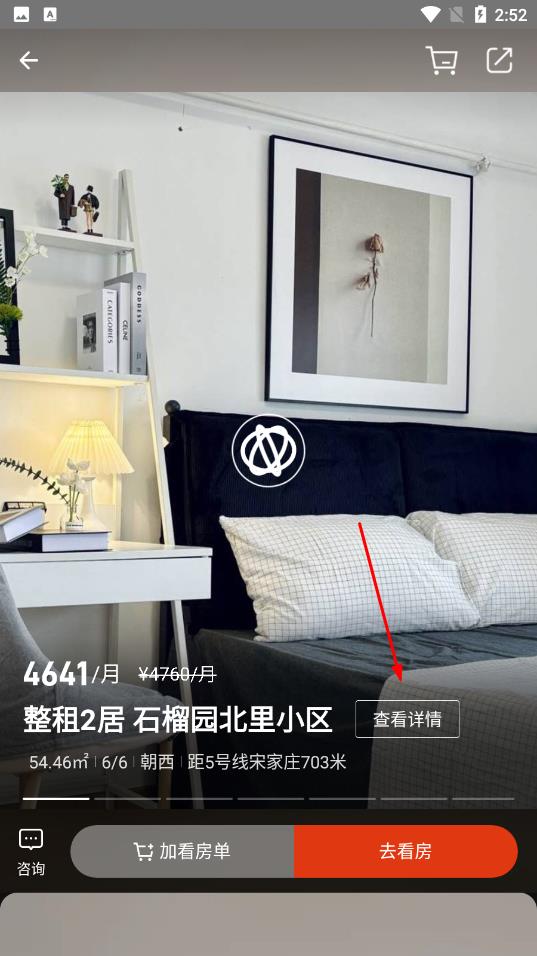 2、进入房源展示页面,点击查看详情,进入房源详情页面。