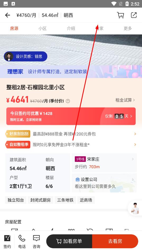 3、在房源详情页面,点击顶部导航栏中的管家选项。