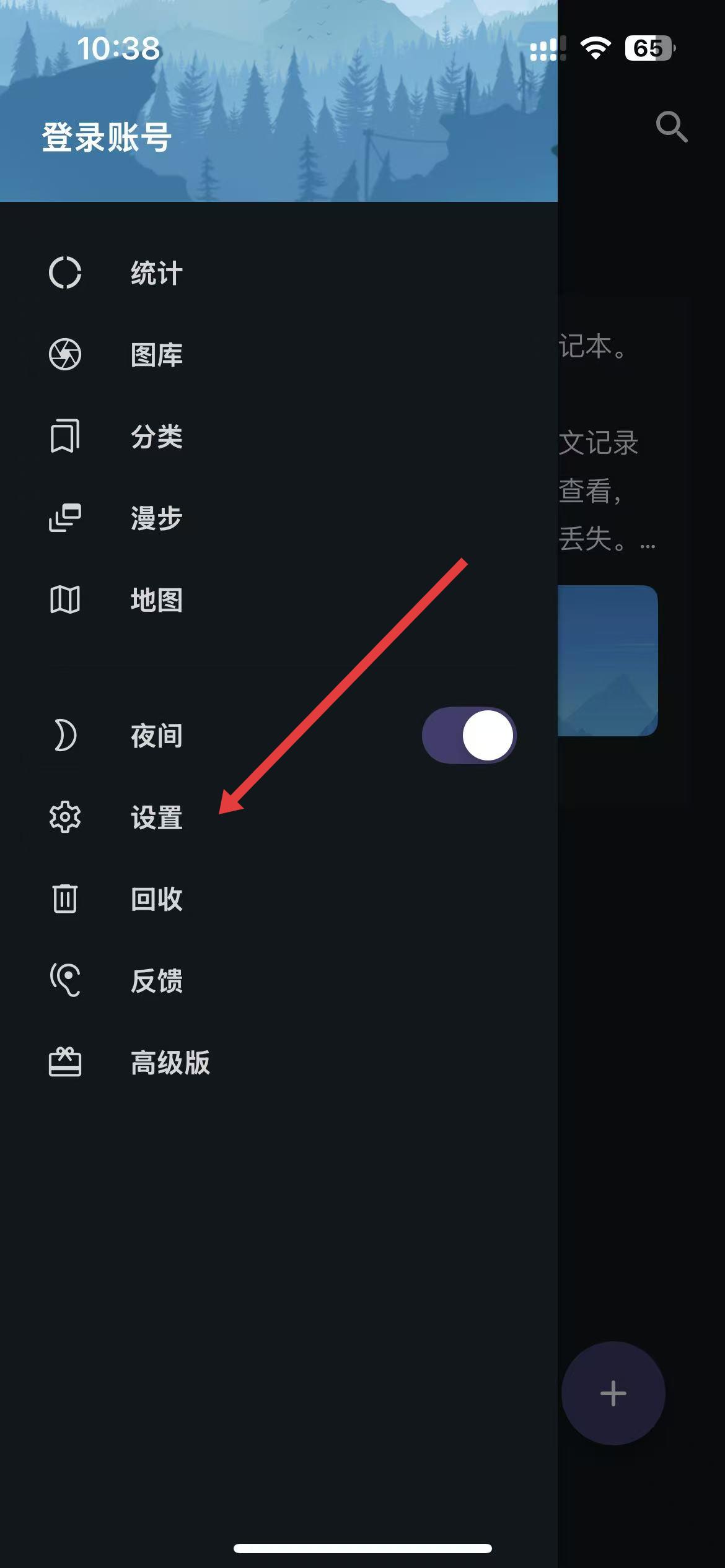 1、打开一本日记app,点击界面左上角三条横线状的菜单图标,展开隐藏菜单。