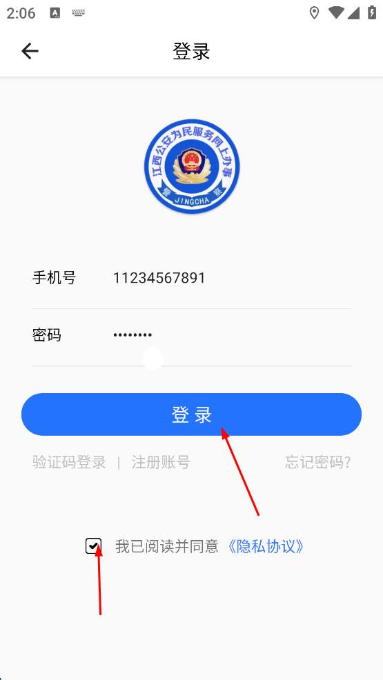 4、勾选我已阅读并同意相关协议,点击登录按钮完成登录。