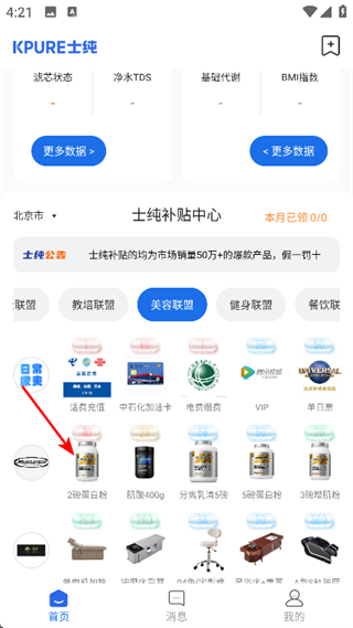 2、在美容联盟页面,选择要查看的商品,如2磅蛋白粉。