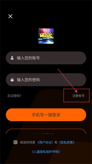 3、在登录页面,点击注册账号,进入注册账号页面。