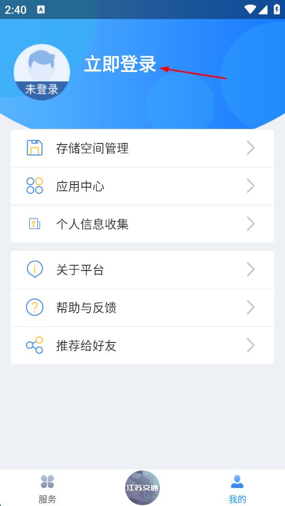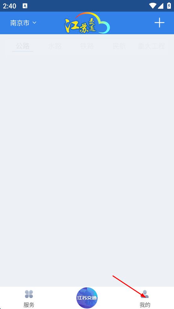 2、在江苏交通首页,点击右下角我的,进入个人页面。