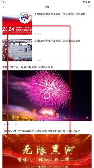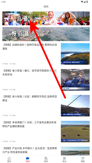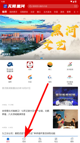 1、打开无限黑河APP,点击底部导航栏中的视频选项,进入视频页面。