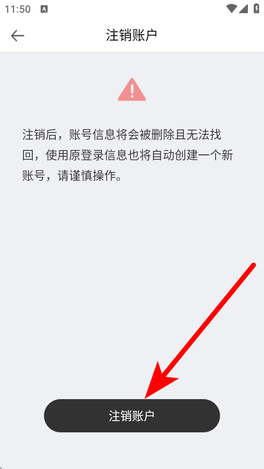 4、在注销说明的页面,点击注销账户,完成账号注销的操作。