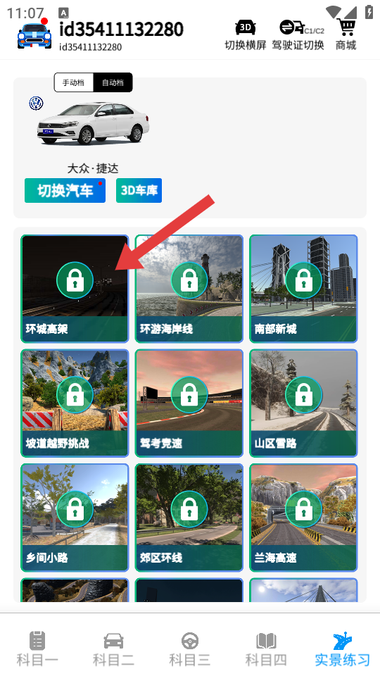 3、选择想要练习的实景场景如环城高架,点击场景的卡片进入。