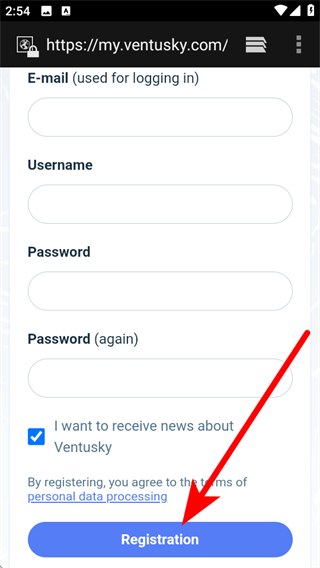 4、在填写页面,输入信息后,点击Registration,完成注册操作。