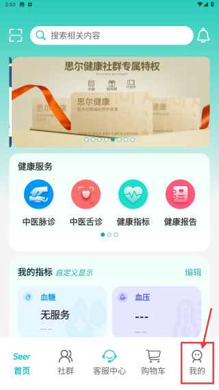 1、打开思尔健康应用,点击底部我的选项,进入个人中心页面。