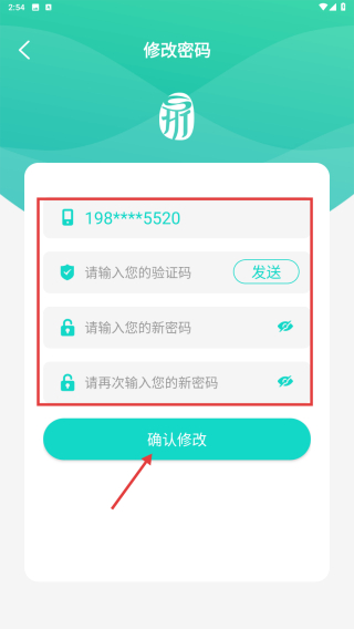 4、依次输入验证码、新密码并确认,点击确认修改按钮,完成密码修改操作。