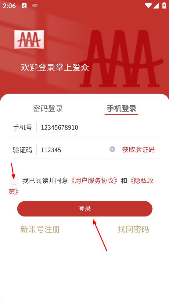 3、在登录页面选择手机登录,输入手机号,点击获取验证码,输入验证码,勾选已阅读并同意相关协议。