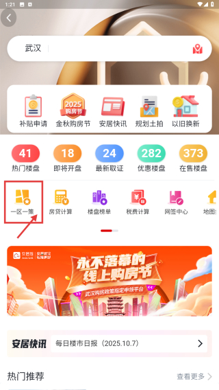 1、打开房产类应用,点击首页此汉买房入口,进入区域房产服务页面。