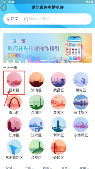 3、选择经开区区域,进入该区域房产政策详情页。