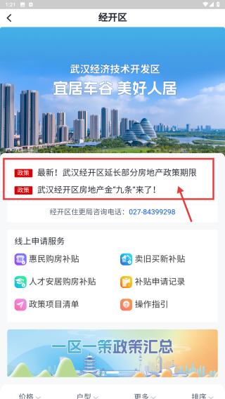 4、点击政策条目,查看武汉经开区最新房地产政策内容。