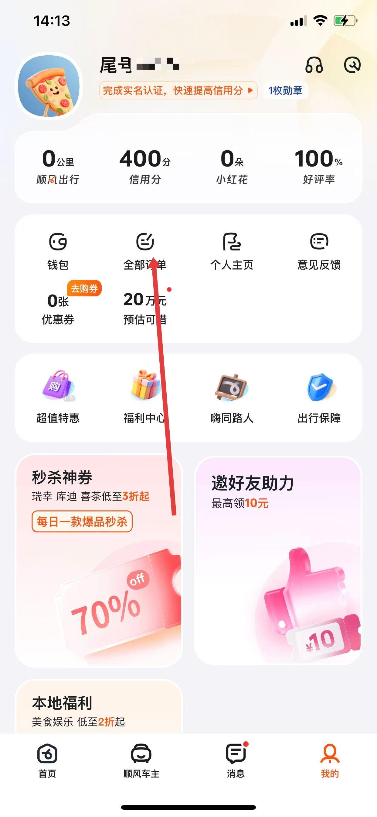 3、进入全部订单页面后,即可查看以往的乘车记录等相关订单信息。
