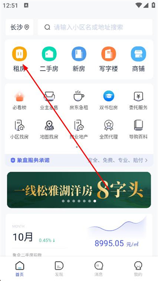 1、打开象盒找房app,点击首页的租房选项进入房源列表页面。