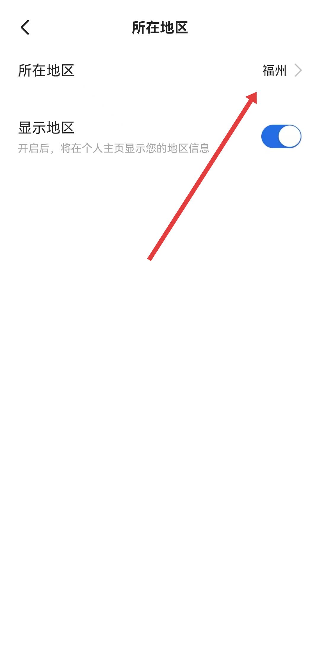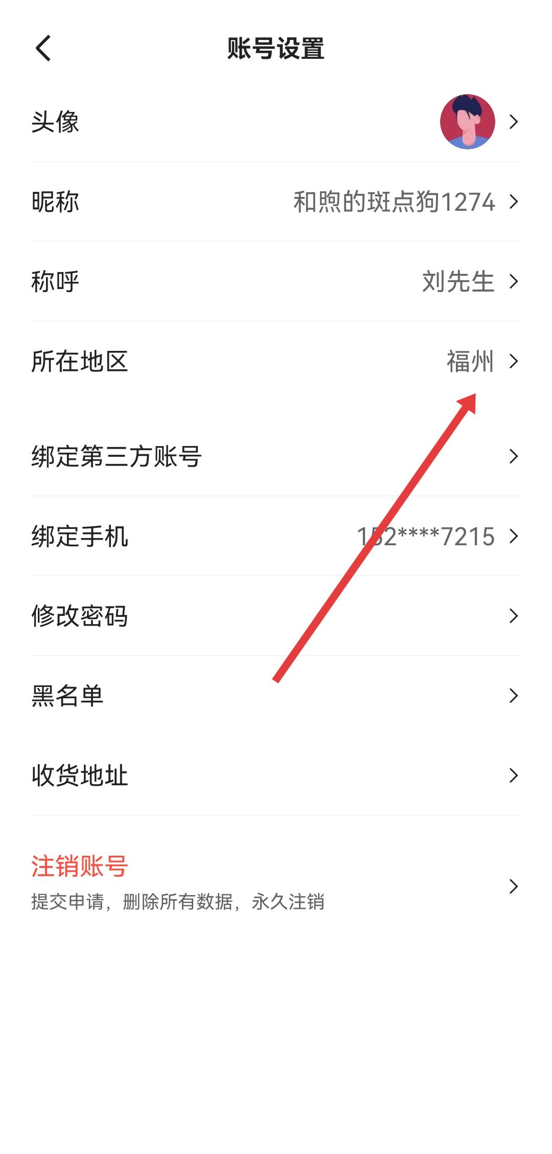3、在账号设置页面,找到所在地区选项如显示福州,点击进入地区选择界面。