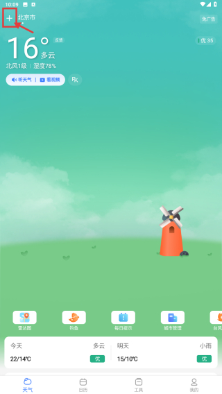 1、打开天气APP,点击左上角加号按钮,进入城市搜索页面。