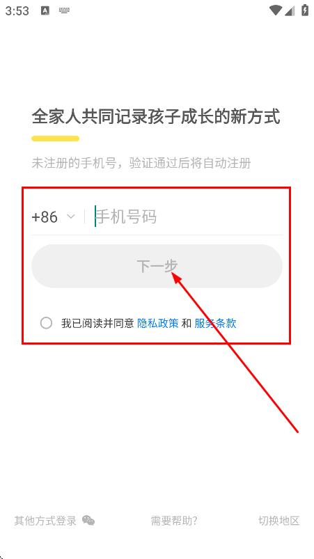 2、点击进入时光小屋,进入手机号填写页面。