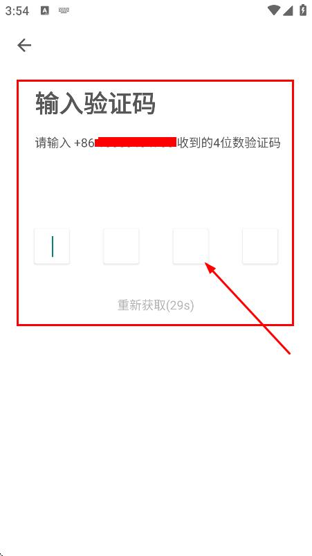 4、在验证码输入页面,输入收到的4位数验证码,完成验证。