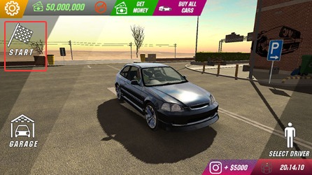 2、进入赛场后注意左上角的开始键,倒计时结束前可以调整车辆配置和驾驶设置。