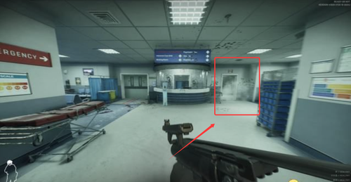3、关于楼梯,下图这个楼梯通往二层,左侧长廊尽头也会有敌人。距离较远,建议直接击毙后锁上门。