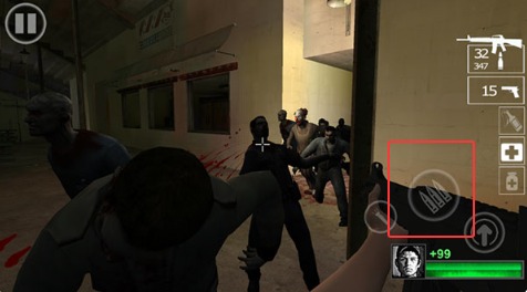 3、遇到僵尸靠近就点右下角的攻击键开火,长按可以连续射击,注意控制弹药消耗。