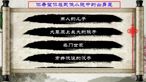 1、若踏入江湖,你希望自己出身于名门正派、武林世家,还是隐世高人的门下。