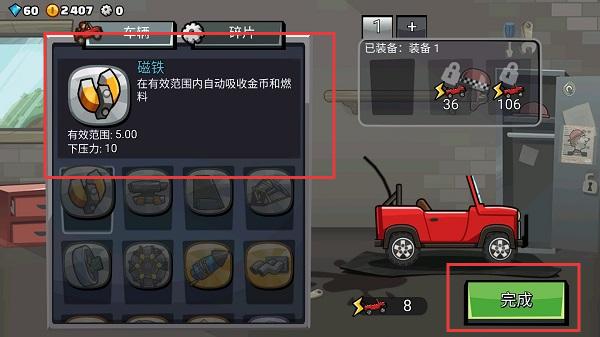 4、赛道上闪着亮光的就是金币,开车压过去就能自动捡到,攒多了能买新零件。