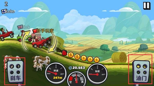 3、开起来之后左手按左边区域控制刹车,右手按右边控制油门,过弯时要刹车油门配合。