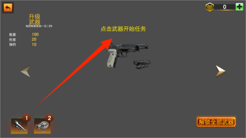1、启动游戏后,点击开始按钮即可进入武器选择界面。