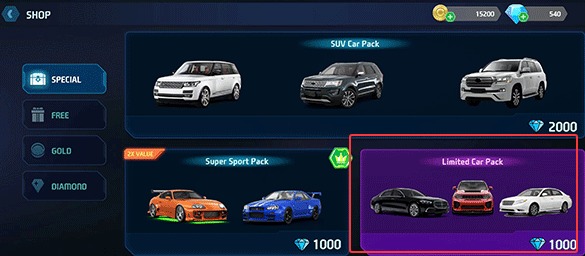 2、想要换新车就得去车库界面,用攒下来的钻石解锁高级跑车,不同车型价格差别挺大的。