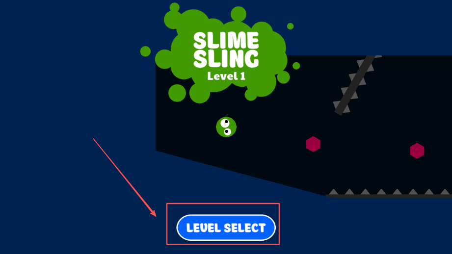 1、先把史莱姆吊起来,让它从墙上弹出去,面对满是障碍物的艰难关卡,得小心控制好力度和方向才能避开危险。