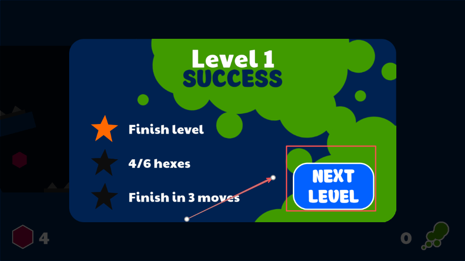 2、接着在闯关时尽量用更少的吊索次数,同时还要把关卡里所有的六边形都收集到手,这样才算完成关卡目标。
