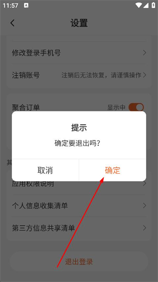 4、在弹出的提示框中,点击确定,即可退出账号。