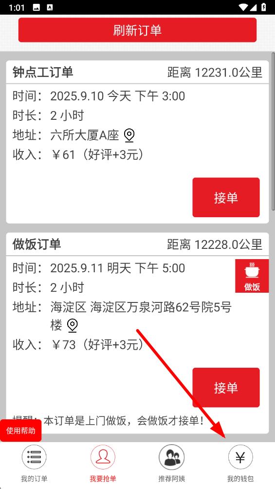1、打开超级阿姨端app,点击底部导航栏中的我的钱包,进入相关页面。