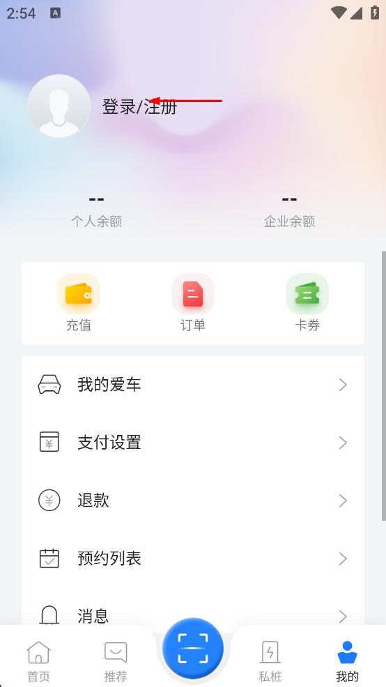 3、在个人中心页面,点击登录/注册按钮,进入登录页面。